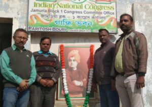 जामुड़िया। जामुड़िया ब्लाक एक कांग्रेस कमेटी के मुख्यालय में स्वामी विवेकानंद की 163 वीं जयंती मनाई गई। इस अवसर पर उनके चित्र पर माल्यार्पण कर श्रद्धा सुमन अर्पित किया गया। इस अवसर पर पश्चिम बंगाल प्रदेश कांग्रेस कमेटी के सदस्य, विश्वनाथ यादव ने कहा कि भारतीय स्वतंत्रता संग्राम में जितने भी महामानवों का स्मरण हो रहा है उन सबके आदर्श पुरुष स्वामी विवेकानंद थे।जामुड़िया ब्लाक एक कांग्रेस कमेटी के अध्यक्ष परितोष बाउरी ने कहा कि उन्होंने सोते हुए भारतीय शेरों को जगाया था । पश्चिम वर्धमान जिला कांग्रेस कमेटी के महासचिव सोमनाथ चटर्जी ने कहा कि स्वामी जी ने युवाओं में राष्ट्रवाद के संस्कार घोलें थे। पश्चिम वर्धमान जिला कांग्रेस कमेटी, अल्पसंख्यक विभाग के चैयरमैन फिरोज खान ने कहा कि परतंत्रता की बेड़िया तोड़कर जो लोग भारत माता को आजाद कराने के लिए अपने प्राणों की बाजी लगाते थे । उनके पथ प्रदर्शक स्वामी विवेकानंद ही थे एवं अन्य उपस्थित थे।