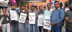 बैरकपुर, 18 जनवरी 2026: मुर्शिदाबाद व बेल्डांगा में खबर संग्रह के दौरान पत्रकारों पर हालिया हमले जैसी घटनाओं के खिलाफ बैरकपुर महकमे के सभी समाचार माध्यमों के प्रतिनिधियों ने रविवार को जोरदार विरोध प्रदर्शन किया। बैरकपुर रेल स्टेशन के समक्ष से शुरू होकर चिड़िया मोड़ तक पहुंचा यह मार्च पुलिस व प्रशासन की निष्क्रियता पर सवाल उठाते हुए संपन्न हुआ।