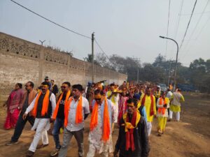 कलश यात्रा में इलाके की बड़ी संख्या में महिला-पुरुष श्रद्धालुओं ने भाग लिया और इस उपरांत पीले वस्त्र धारण किए हुए भक्तों की इस यात्रा से पूरा क्षेत्र भक्तिमय हो गया। कार्यक्रम की शुरुआत वैदिक मंत्रोच्चारण के साथ हुई। मंदिर के पुजारी बबन उपाध्याय ने विधिवत पूजा-अर्चना कर कलश यात्रा को रवाना किया। यात्रा मंदिर परिसर से निकलकर आसपास के क्षेत्रों का भ्रमण करते हुए पुनः मंदिर प्रांगण में संपन्न हुई। इस अवसर पर सदन कुमार सिंह, विजय पासवान, देवेन्द्र राम कहार, छोटे लाल पासवान, अशोक मिश्रा, धर्मेंद्र राय, सिंघासन पासवान, सत्यनारायण रवानी, बबलू बर्मा, राजू सिंह, सनोज महतो अन्य सहित बड़ी संख्या में स्थानीय लोग मौजूद रहे।श्रद्धालुओं ने भगवान शिव और माता पार्वती की आराधना कर क्षेत्र की सुख-समृद्धि की कामना की। इस अवसर पर सदन कुमार सिंह ने बताया कि इस मंदिर का निर्माण 1999 में किया गया था यह बहुत ही जागृत मंदिर है इस मंदिर के साथ श्रद्धालुओं की आस्था जुडी हुई है माना जाता है कि इस मंदिर में आकर जो भी सच्चे मन से बजरंगबली से प्रार्थना करते हैं उनकी मनोकामना जरुर पूरी होतीहै। हर साल इस सरकार कार्यक्रम का आयोजन किया जाता है जहां पर कलश यात्रा निकाली जाती है और उसके बाद विभिन्न धार्मिक अनुष्ठानों का आयोजन किया जाता है सदन कुमार सिंह ने कहा कि कल भी विभिन्न धार्मिक अनुष्ठानों का आयोजन किया जाएगा और सरस्वती पूजा के दिन वहां खिचड़ी भोग आयोजित किया जाएगा उन्होंने सभी से इन धार्मिक अनुष्ठानों में सम्मिलित होने का आव्हान किया।वही इस धार्मिक कार्यक्रम को सफल बनाने में स्थानीय ग्रामीणों का सराहनीय सहयोग रहा।