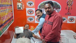रानीगंज। विश्व हिंदू परिषद रानीगंज प्रखंड की ओर से मानवता एवं समाज की सेवा उद्देश्य को लेकर रक्तदान जीवनदान के संकल्प को साकार करते हुए आज एनएसबी रोड स्थित रानीगंज प्रखंड विश्व हिंदू परिषद कार्यालय में रक्तदान शिविर का आयोजन किया गया। इस शिविर में कुल 50 यूनिट रक्तदान किया गया, जिसे आसनसोल जिला अस्पताल के चिकित्सकों के सहयोग से संपन्न कराया गया। रक्तदान शिविर में स्थानीय नागरिकों, युवाओं एवं संगठन के कार्यकर्ताओं ने उत्साहपूर्वक भाग लिया। शिविर का मुख्य उद्देश्य जरूरतमंद मरीजों के लिए रक्त की उपलब्धता सुनिश्चित करना तथा समाज में रक्तदान के प्रति जागरूकता फैलाना रहा। इस अवसर पर विश्व हिंदू परिषद आसनसोल जिला सचिव तेज प्रताप सिंह की गरिमामयी उपस्थिति रही। कार्यक्रम का नेतृत्व विश्व हिंदू परिषद रानीगंज प्रखंड सचिव विश्वजीत गोराई ने किया। इस बारे में पत्रकारों को जानकारी देते हुए विश्व हिंदू परिषद के रानीगंज प्रखंड के सचिव विश्वजीत गोराई ने कहा कि विश्व हिंदू परिषद की तरफ से आज दूसरे वर्ष रक्तदान शिविर का आयोजन किया गया है यहां पर बड़ी संख्या में लोग रक्तदान करने के लिए आ रहे हैं उन्होंने सभी से रक्तदान करने का आग्रह किया उन्होंने कहा कि रक्तदान करने से जैसे दूसरे व्यक्ति का लाभ होता है वैसे अपना शरीर भी तंदुरुस्त रहता है इसलिए उन्होंने सभी से बिना डरे रक्तदान करने का आग्रह किया उन्होंने कहा कि आज के रक्तदान शिविर में विश्व हिंदू परिषद दुर्गा वाहिनी सहित विश्व हिंदू परिषद से जुड़े सभी संगठनों के प्रतिनिधि उपस्थित हैं और रक्तदान कर रहे हैं। वही आज के कार्यक्रम में रानीगंज के विशिष्ट चिकित्सक और पिछले विधानसभा चुनाव में रानीगंज से भाजपा प्रत्याशी डॉ बिजन मुखर्जी ने भी रक्तदान किया इस मौके पर उन्होंने कहा कि एक चिकित्सक होने के नाते को जानते हैं कि रक्तदान कितना जरूरी है कभी-कभी एक बोतल खून भी किसी मरीज की जिंदगी को बचा सकता है इसलिए उन्होंने सभी से रक्तदान करने का आह्वान किया और कहा कि रक्तदान करने से किसी को कोई तकलीफ नहीं होती उन्होंने विश्व हिंदू परिषद के रानीगंज प्रखंड के सदस्यों को धन्यवाद दिया जिन्होंने इस वक्त दान शिविर का आयोजन किया। आज के कार्यक्रम के दौरान विश्व हिंदू परिषद के आसनसोल जिला सचिव तेज प्रताप सिंह के अलावा बिहू मंडल निर्मल नंदी राहुल सिंह रोहन सिंह रितेश दत्ता धीरज गोप अखंड प्रताप सिंह अमित प्रजापति वहीं दुर्गा वाहिनी की तरफ से अर्चिता साव ईशा यादव राखी दां आदि उपस्थित थे।