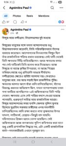 अपने पोस्ट में अग्निमित्र पाल ने लिखा कि सिंगूर और नंदीग्राम के लोगों का संघर्ष इतिहास के पन्नों में दफ़न हो रहा है और ज़ुल्म के किरदार सत्ता की रोशनी में उभर रहे हैं।
