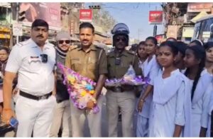 माध्यमिक परीक्षा के अंतिम दिन छात्रों ने पुलिस को फूल देकर किया सम्मान