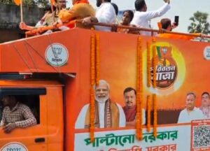 आसनसोल। आगामी पश्चिम बंगाल विधानसभा चुनाव को लेकर भारतीय जनता पार्टी ने अपनी तैयारियों को तेज कर दिया है। राज्य में सत्ता परिवर्तन के लक्ष्य के साथ भाजपा ने प्रदेश के विभिन्न हिस्सों से कुल 9 ‘परिवर्तन यात्राओं’ की शुरुआत की है। इन यात्राओं के माध्यम से पार्टी आम लोगों तक अपनी नीतियों और संदेश को पहुंचाने के साथ ही राज्य में बदलाव का आह्वान कर रही है। इसी क्रम में पश्चिम बंगाल और झारखंड की सीमा से सटे आसनसोल के माईथन क्षेत्र से भी एक परिवर्तन यात्रा की शुरुआत की गई। यात्रा के शुभारंभ से पहले भाजपा नेताओं और कार्यकर्ताओं ने आसनसोल के माईथन स्थित प्रसिद्ध मां कल्याणेश्वरी मंदिर में पूजा-अर्चना और धार्मिक अनुष्ठान किए। इसके बाद विधिवत रूप से परिवर्तन यात्रा को रवाना किया गया। माईथन से शुरू हुई यह परिवर्तन यात्रा राज्य के पश्चिम बर्धमान, बांकुड़ा, पुरुलिया और बीरभूम सहित चार जिलों से होकर गुजरेगी। इस दौरान विभिन्न स्थानों पर सभाएं, जनसंपर्क अभियान और कार्यकर्ता बैठकें आयोजित की जाएंगी, जिनके माध्यम से पार्टी आगामी विधानसभा चुनाव के लिए जनसमर्थन जुटाने का प्रयास करेगी। भाजपा नेताओं के अनुसार यह यात्रा माईथन से शुरू होकर पश्चिम बर्धमान जिला के गोरंडी, दोमोहानी, जामुड़िया, पांडवेश्वर, लाउदोहा, उखड़ा, अंडाल, रानीगंज, आसनसोल, कुल्टी और डिसेरगढ़ होते हुए आगे पुरुलिया जिला की ओर बढ़ेगी। यात्रा के दौरान कई स्थानों पर जनता से सीधे संवाद कर राज्य में विकास और बदलाव के मुद्दों को प्रमुखता से उठाया जाएगा।