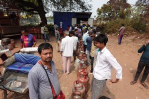 सांकतोड़िया : गैस संकट के चलते पुरुलिया के अलग-अलग डिस्ट्रीब्यूशन सेंटर पर उपभोक्ताओं की लंबी लाइनें लगी हुई देखी गई। बार-बार कोशिश करने के बाद भी गैस बुकिंग नहीं होने से उपभोक्ताओं को बहुत दिक्कत हो रही है। अगर उन्हें गैस नहीं मिली तो वे चूल्हे पर खाना कैसे बनाएंगे? इसे लेकर पुरुलिया जिले में पूरी तरह से हंगामा मचा हुआ है।