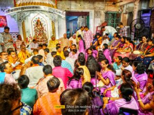 कोलकाता । श्री श्री बलदेवजी गवरजा सेवा ट्रस्ट के कस्तूरी जयंती महोत्सव में बलदेवजी मन्दिर प्रांगण में खुशी लिये गौरी पूजन का शुभ दिन आया है एवम् कस्तूरी महकी इणबार, के नाचो गाओ सारे इणबार तथा सारी मंडली देवे बधाई, आनन्द पर्व मनाओ एवम् गवरजा गीतों से सभी भाव विभोर हो गये ।