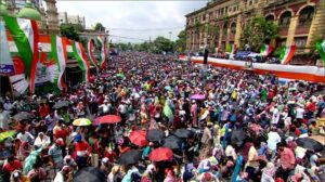 जब ममता बनर्जी संबोधन कर रही थीं तब बारिश हो रही थी। बावजूद इसके भारी भीड़ थी जिसे लेकर उत्साह जाहिर करते हुए ममता ने कहा कि बारिश देखकर भाजपा और माकपा को लगा था कि तृणमूल की रैली खत्म हो गई लेकिन उनकी मंशा पर पानी फिर गया।